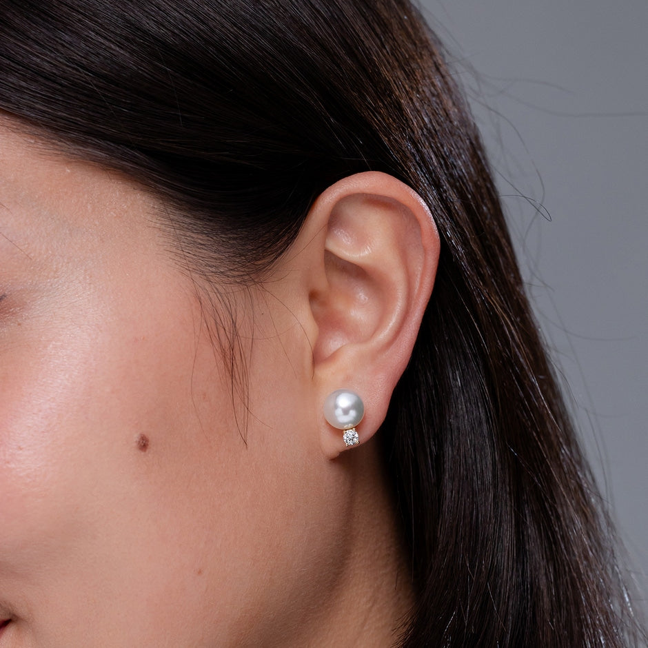 These Solitaire South Sea Pearl Studs by Angara exude timeless elegance with their luminous 8mm South Sea cultured pearls. Set in 18k white gold, each pearl is accented by a prong-set round diamond that sparkles like a celestial star, adding refined brilliance to this classic design. Ideal for elevating any ensemble with a touch of natural beauty and luxury.