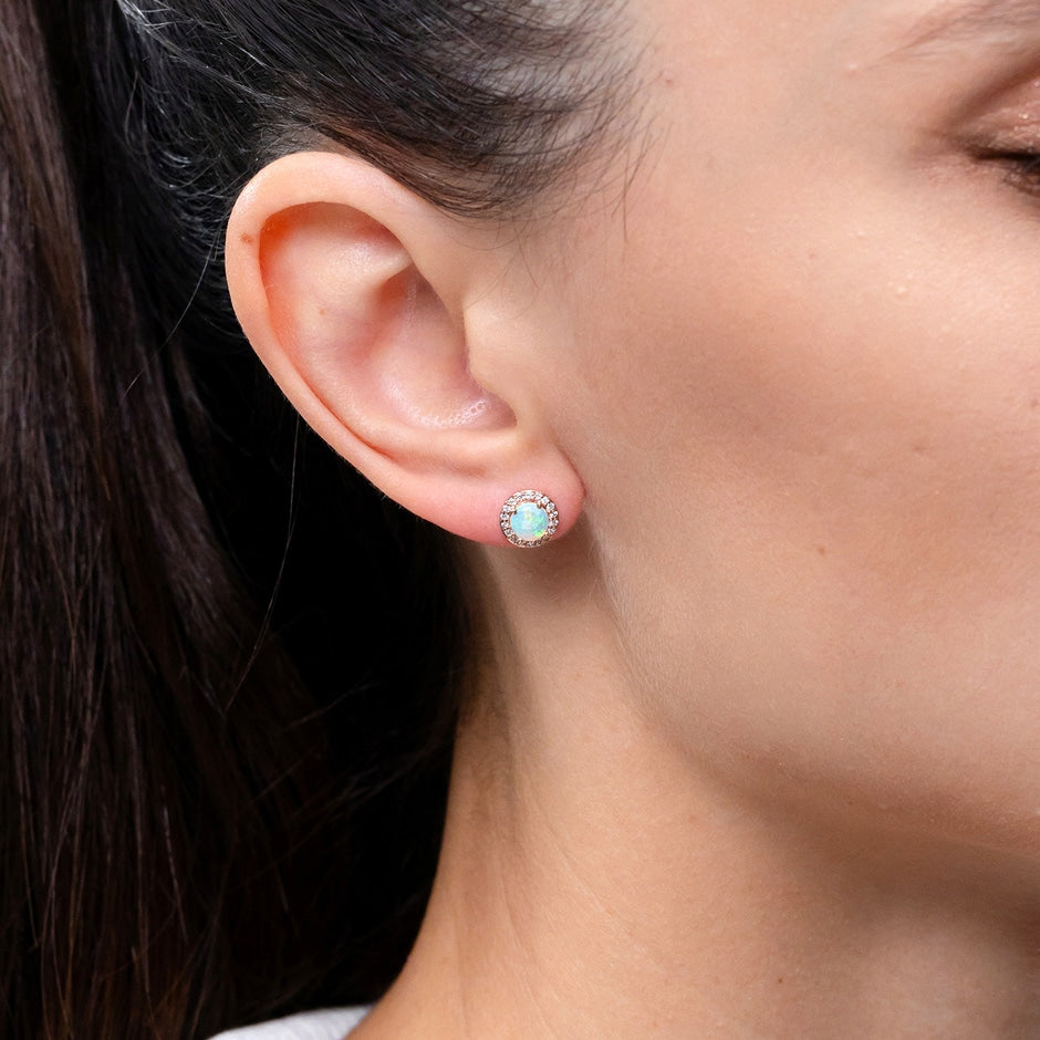 Vintage-Inspired Round Opal Halo Stud Earrings