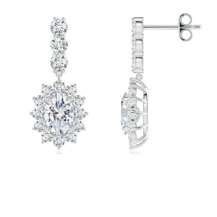 Oval Lab-Grown Diamond Floral Halo Dangle Earrings