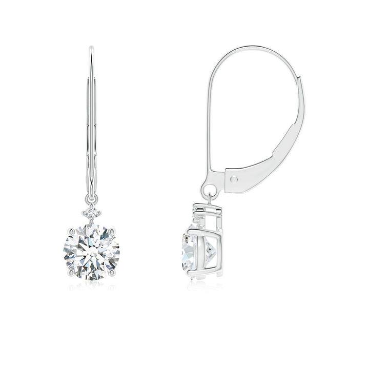 These Prong-Set Round Lab-Grown Diamond Leverback Dangle Earrings by Angara sparkle with round lab-grown diamonds in classic prong settings. Mounted on 14k white gold with secure leverback closures, these earrings offer refined brilliance and everyday elegance.
