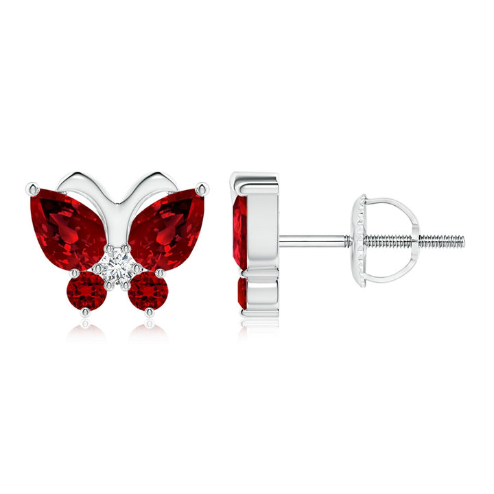Lab-Grown Ruby Butterfly Stud Earrings with Lab Diamond