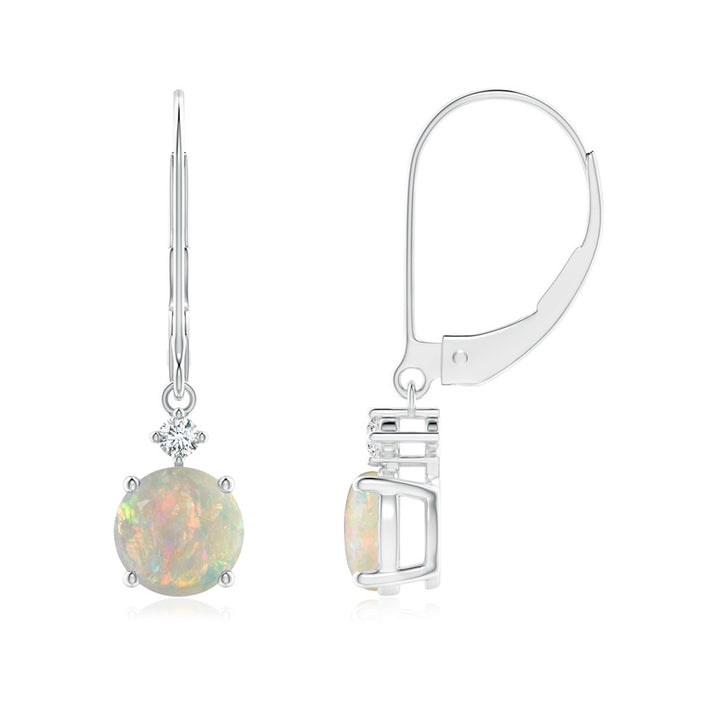 Prong-Set Round Opal Leverback Dangle Earrings with Diamond