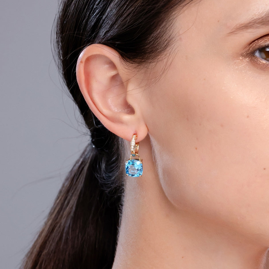 Cushion Swiss Blue Topaz Drop Earrings with Diamond Accents