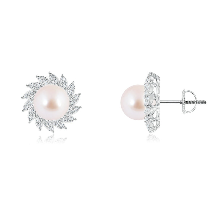 Japanese Akoya Pearl Spiral Halo Stud Earrings