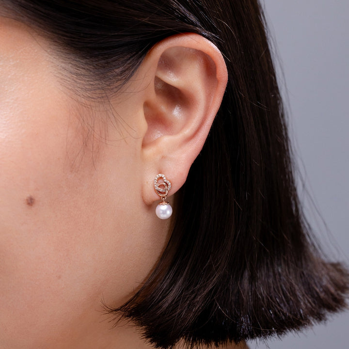 Intertwined Heart Japanese Akoya Pearl Drop Earrings