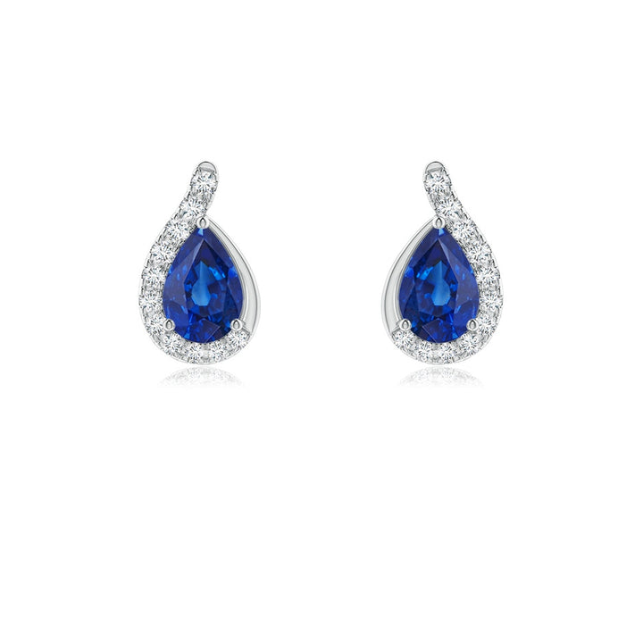 Pear Blue Sapphire Earrings with Diamond Swirl Frame