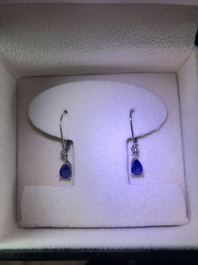 Pear-Shaped Sapphire Leverback Drop Earrings with Diamond