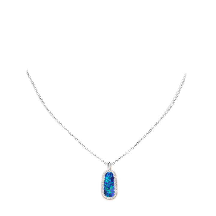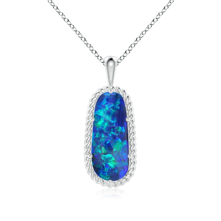 This GIA Certified Oval Black Opal Twisted Rope Pendant by Angara is a mesmerizing celebration of rarity and craftsmanship. At its center lies a one-of-a-kind, 5.45-carat black opal—rich with a celestial play of color—set within a delicately twisted rope frame. The AAAA-grade gemstone captures a galaxy of hues, making it a meaningful piece for those drawn to mystery, transformation, and inner depth.