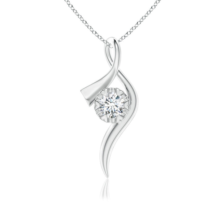 This Lab-Grown Solitaire Diamond Ribbon Pendant by Angara captures delicate movement and enduring sparkle. A round lab-grown diamond is nestled in a sculptural ribbon motif, symbolizing continuity and grace. Its subtle curve and soft bezel setting make it a meaningful gift or an elegant addition to your everyday collection.
