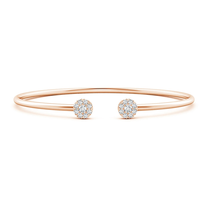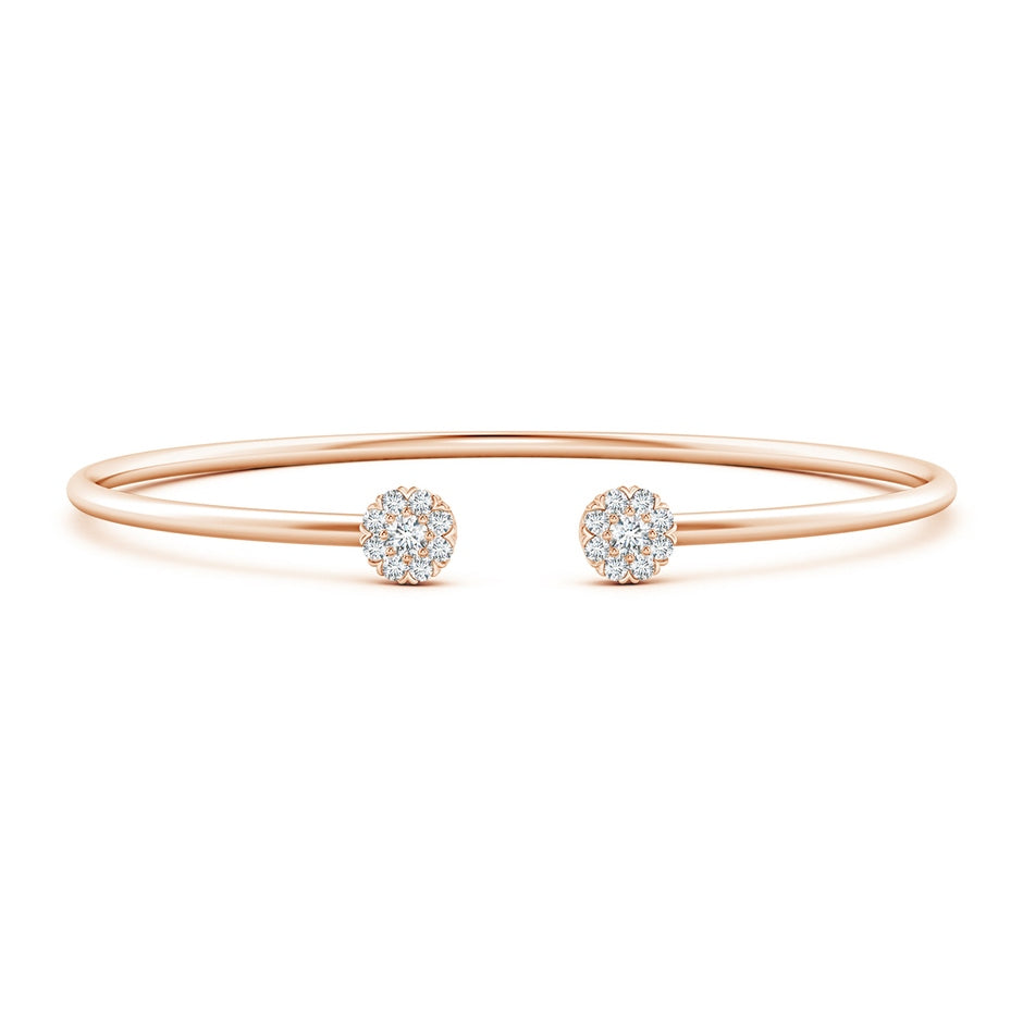 Handcrafted in 14K rose gold with 18 round diamonds totaling 0.50 carats. Diamonds are G color, VS2 clarity. Prong setting. Open flex bangle.