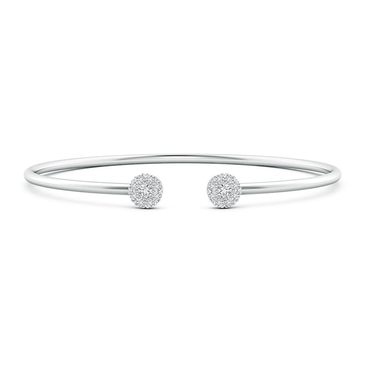 This Diamond Halo Cluster Open Flex Bangle by Angara offers a celestial sparkle in a clean, contemporary form. The open ends are finished with radiant diamond clusters that dance with every movement, bringing both brilliance and polish to any look.