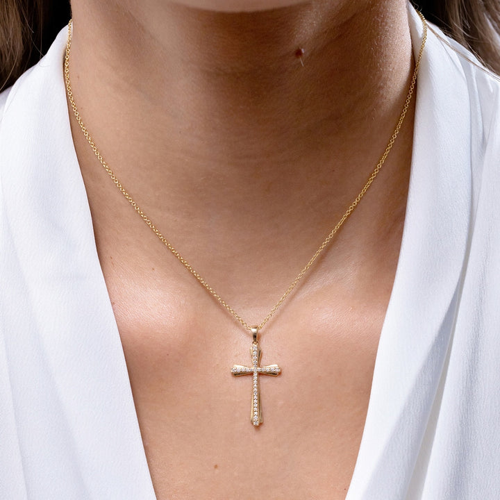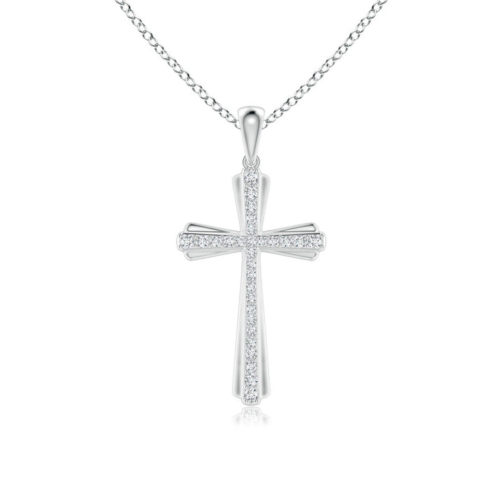 This Prong-Set Diamond Tapered Cross Pendant by Angara is a radiant interpretation of faith and style. The flared silhouette and shimmering diamonds give it a modern feel, while the classic cross form makes it a meaningful keepsake to wear every day.