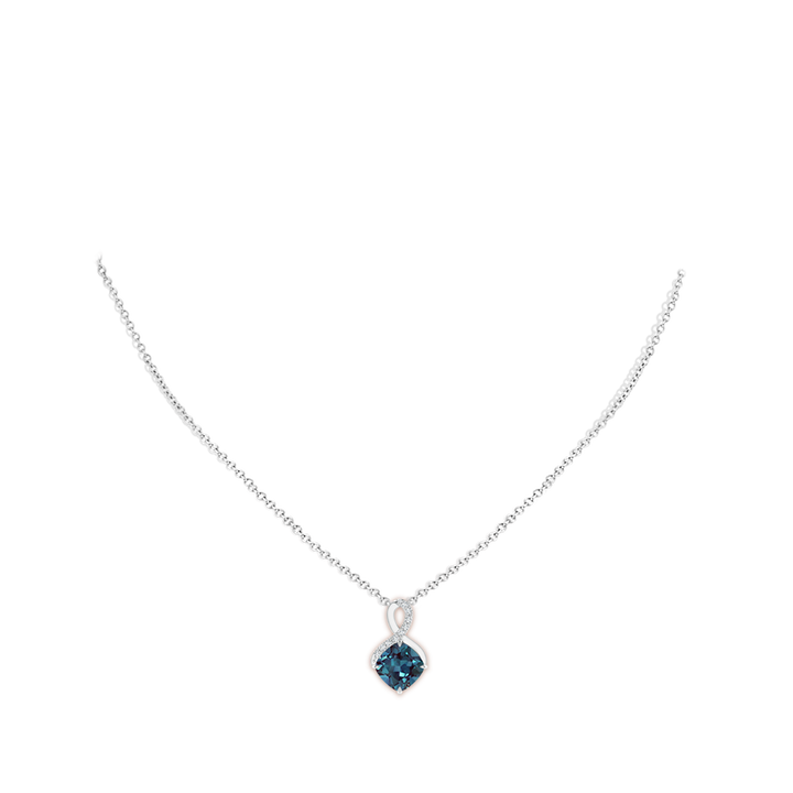 This Claw-Set Lab-Grown Alexandrite Infinity Pendant with Diamonds by Angara symbolizes eternity with a claw-set 8mm lab-grown cushion alexandrite and ten surrounding prong-set round lab-grown diamonds. The elegant pendant combines vibrant color and delicate sparkle in a choice of metals.