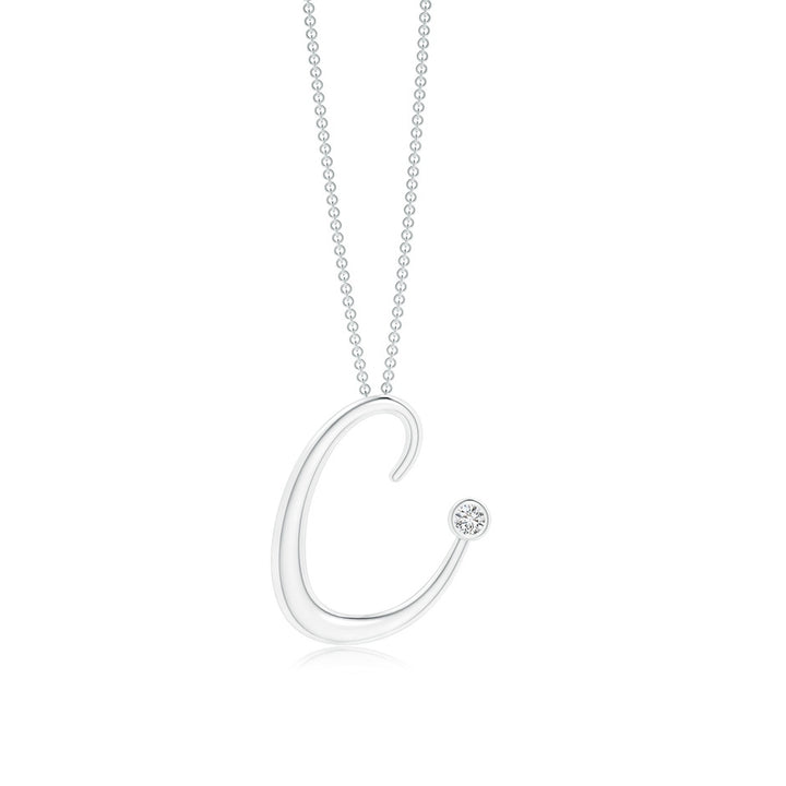 Bezel Set Diamond Lowercase 'C' Initial Pendant