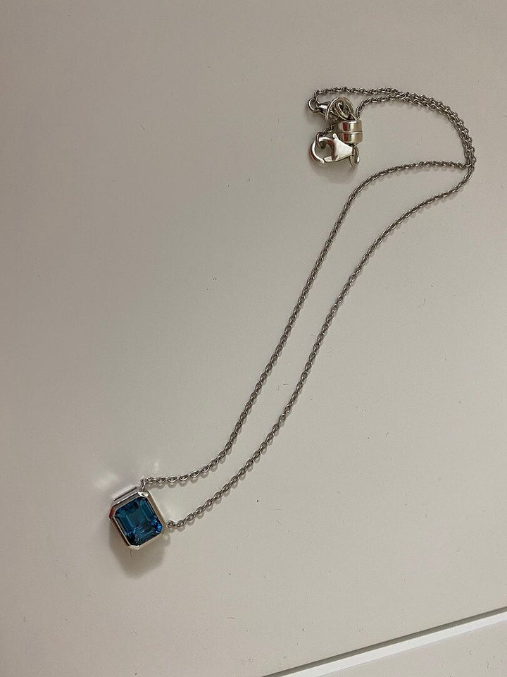 East-West Bezel-Set Emerald-Cut Garnet Pendant
