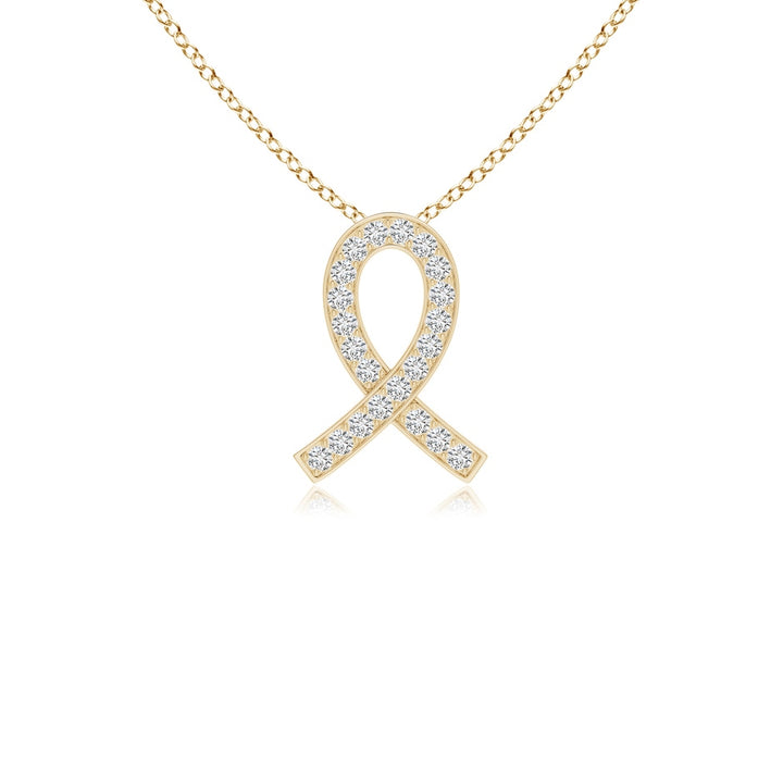 This Pave-Set Diamond Awareness Ribbon Pendant by Angara spreads a message of love, hope, and awareness with timeless elegance. Crafted in 14k yellow gold, it is adorned with glittering pave-set diamonds that add subtle brilliance to the classic ribbon silhouette.