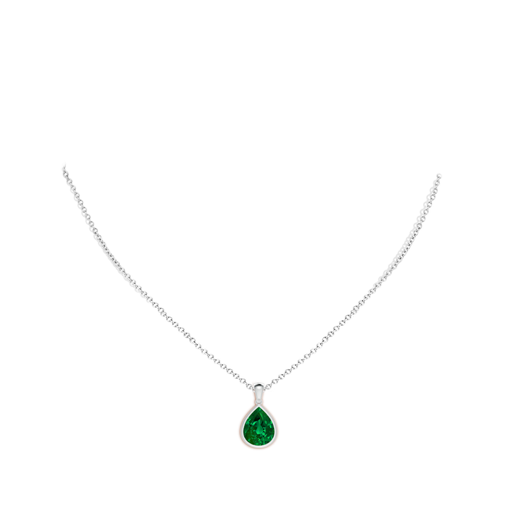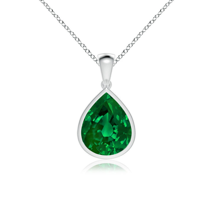 Bezel-Set Pear Lab-Grown Emerald Solitaire Pendant