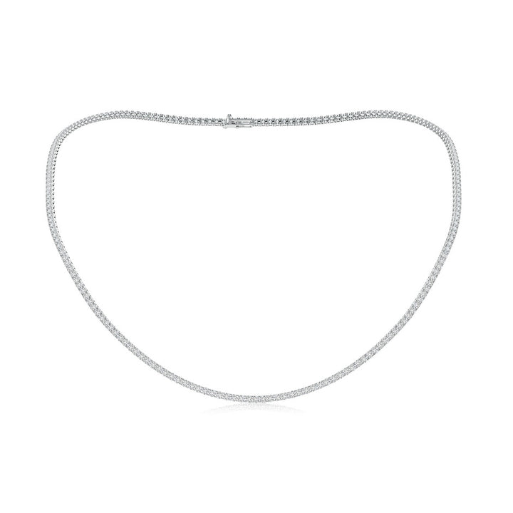 Crafted in 14k white gold, featuring prong-set round diamonds totaling 7 carats. Diamonds are H color, SI2 clarity. Necklace length is 18 inches with a secure clasp.