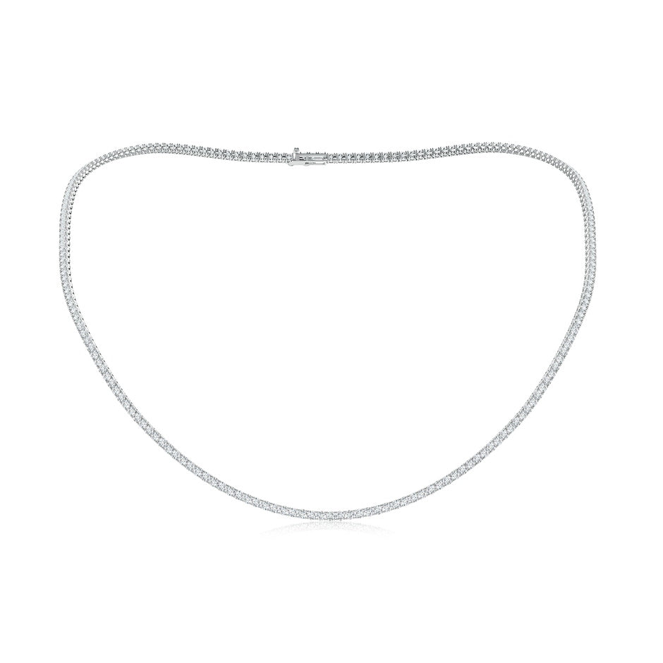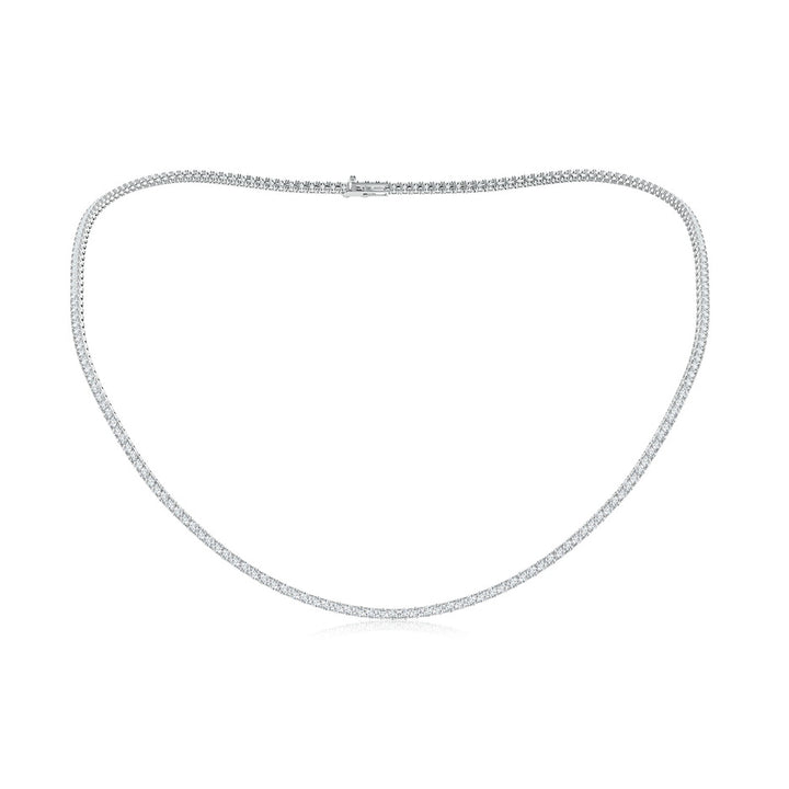 Crafted in 14k white gold with prong-set lab-grown round diamonds totaling 7.04 carats. Diamonds are F-G color, VS clarity. Necklace length is 18 inches with secure clasp.