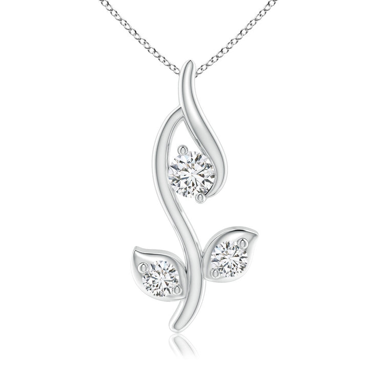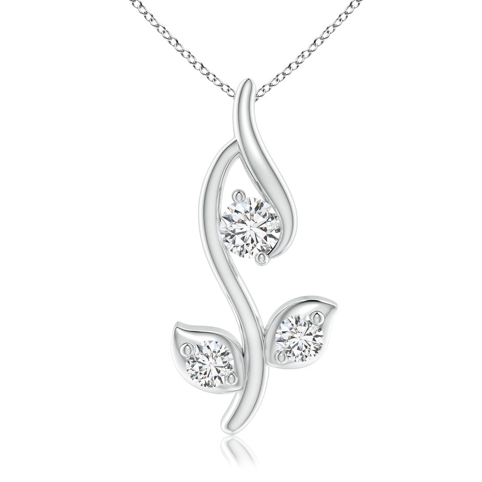 This Classic Diamond Leaf and Vine Pendant by Angara is a delicate homage to nature’s elegance. Sculpted in 14k white gold, the pendant features three prong-set round diamonds that illuminate the leaf and vine motif with subtle sparkle. This piece is a graceful accessory that blends organic inspiration with refined design, perfect for everyday wear or special occasions.