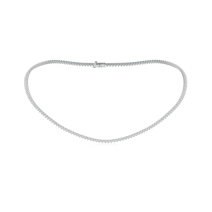 This 16' Three-Prong Set Diamond Tennis Necklace by Angara channels refined style and effortless glamour. The seamless row of round diamonds, each secured in a three-prong setting, flows gracefully on a 14k white gold chain. Perfect for fashion-forward wearers, this necklace adds luminous sparkle suitable for any occasion.