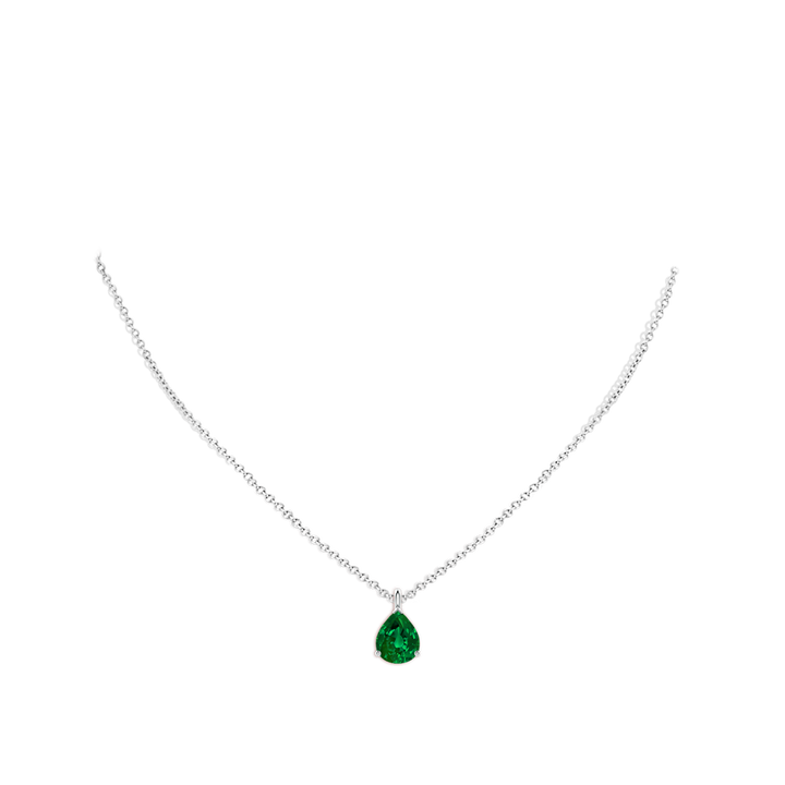This Lab-Grown Solitaire Pear Emerald Classic Pendant by Angara is a stunning statement of natural beauty. Crafted in platinum, the pendant features a prong-set pear-shaped lab-grown emerald that captivates with its vivid green hue and impressive 10x8mm size. Linked to a simple metal bale, it is a versatile and elegant piece for any occasion.