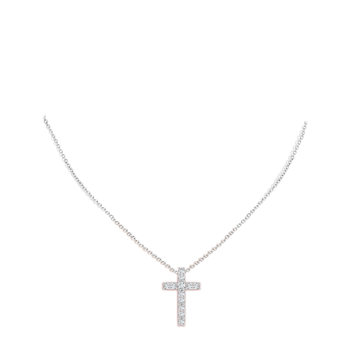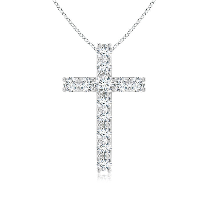 This Classic Shared Prong-Set Diamond Cross Pendant by Angara is a radiant symbol of faith, crafted with meticulous attention to detail. The twelve brilliant round diamonds are arranged in a timeless cross silhouette and secured with a unique shared prong setting, enhancing sparkle while maintaining elegance. This pendant embodies spiritual strength and grace, making it a meaningful heirloom to cherish for generations.
