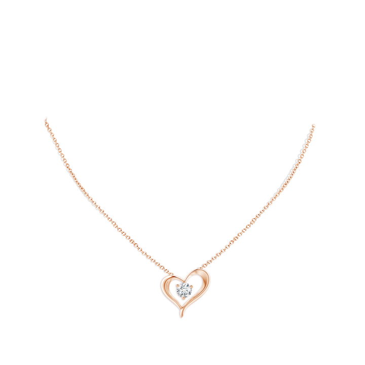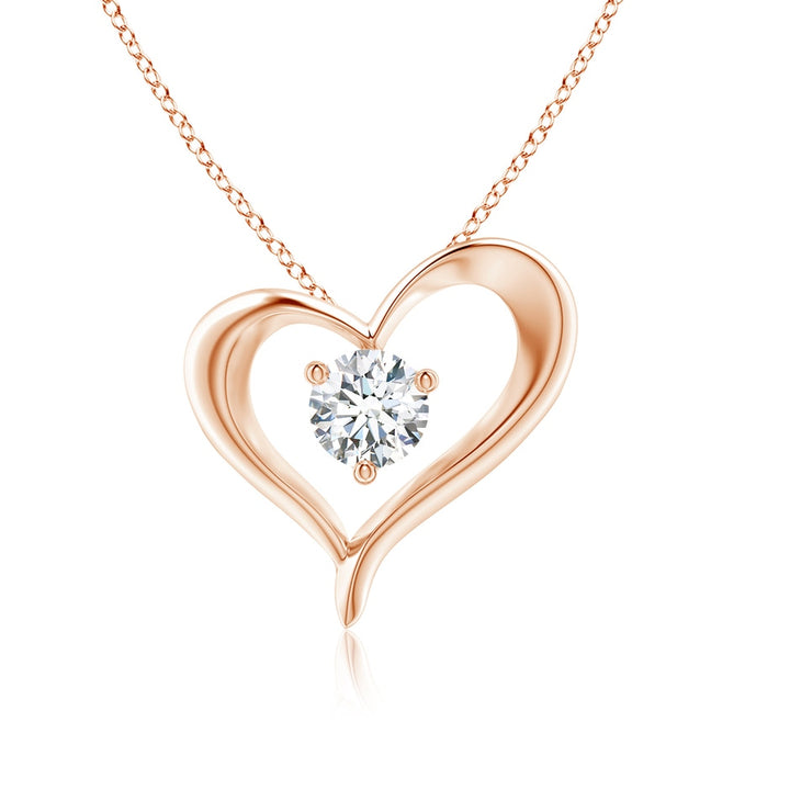 This Lab-Grown Solitaire Diamond Ribbon Heart Pendant by Angara exudes romance with its heart-shaped design. The 14k rose gold frame cradles a sparkling lab-grown round diamond, symbolizing enduring love with sustainable luxury. Its delicate prong setting enhances the diamond’s brilliance, making it a heartfelt gift or everyday treasure.