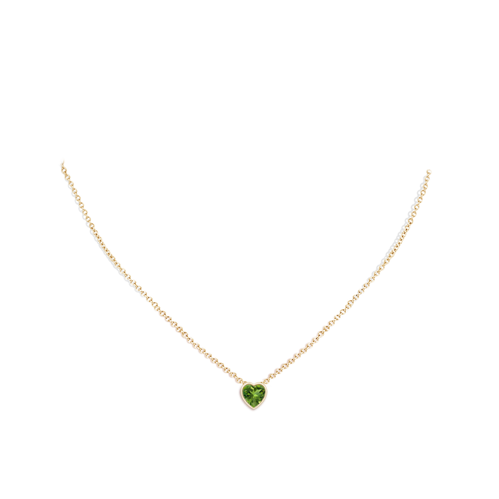This Bezel-Set Solitaire Heart Peridot Pendant by Angara captivates with its olive green heart-shaped peridot, set securely in a smooth bezel setting. Crafted in 14k yellow gold, this pendant radiates natural beauty and sophistication, making it a perfect gift for the wearer who cherishes elegance with a touch of whimsy.