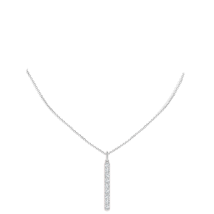 This Lab-Grown Prong-Set Diamond Vertical Bar Pendant by Angara epitomizes modern minimalism. The sleek 14k white gold bar is accented with nine prong-set round lab-grown diamonds, creating a dazzling and versatile piece perfect for layering or solo wear.