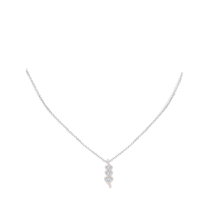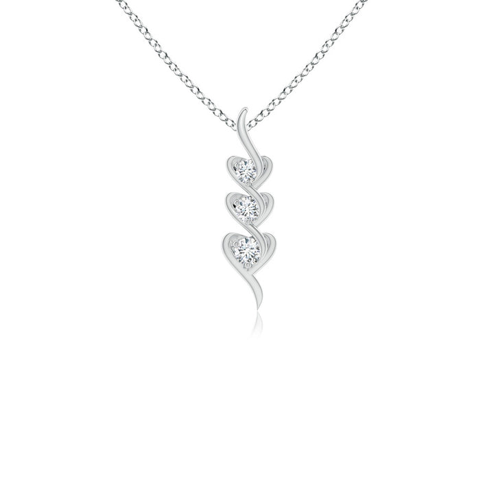 This Three Stone Prong-Set Round Diamond Swirl Heart Pendant by Angara is a breathtaking symbol of love. Designed in 14k white gold, the pendant features three graduated round diamonds prong-set within heart-shaped frames that swirl gracefully into an elegant bale, radiating brilliance and romance.