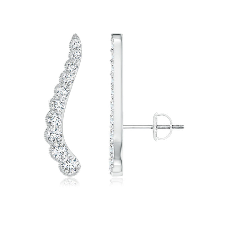 These Diamond Wavy Ear Climbers with Milgrain by Angara captivate with their delicate elegance. Set in 14k white gold, the ear climbers showcase graduated round diamonds along a wavy design, finished with intricate milgrain detailing for a vintage-inspired shimmer.