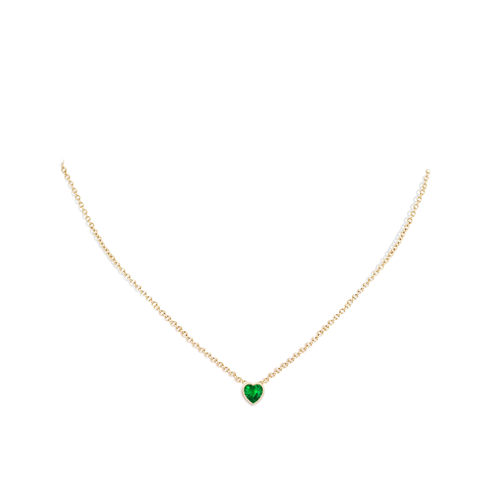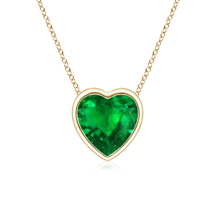 Style Notes: This Bezel-Set Solitaire Heart Emerald Pendant by Angara is a heartfelt classic, showcasing a rich green heart-shaped emerald secured in a bezel setting. Crafted in 14k yellow gold, this pendant beautifully symbolizes love and elegance.