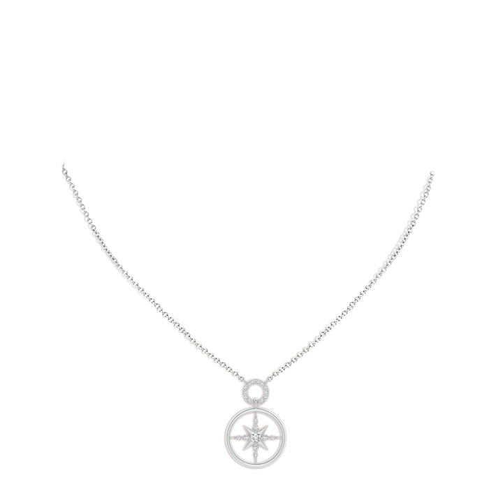 Handcrafted in 14k white gold with twenty-one round brilliant diamonds totaling approximately 0.33 ct. Diamonds graded G color, VS2 clarity. Prong set on a compass-shaped pendant.