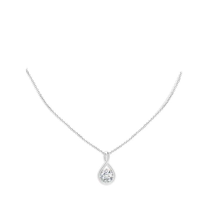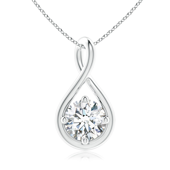 This Lab-Grown Solitaire Diamond Twist Bale Pendant by Angara symbolizes endless love with a dazzling lab-grown round diamond prong set at the core of a lustrous 18k white gold twisted loop. A sophisticated and meaningful piece for any jewelry collection.