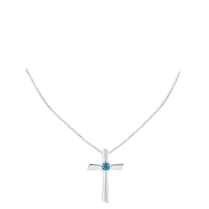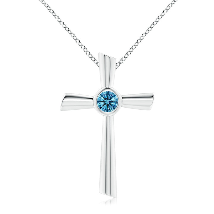 This Bezel-Set Solitaire Round Lab-Grown Fancy Intense Blue Diamond Cross Pendant by Angara is a striking symbol of faith and style, featuring a round lab-grown fancy intense blue diamond bezel-set in 14k white gold. The vibrant blue hue and sleek setting make this pendant a meaningful and elegant addition to any collection.