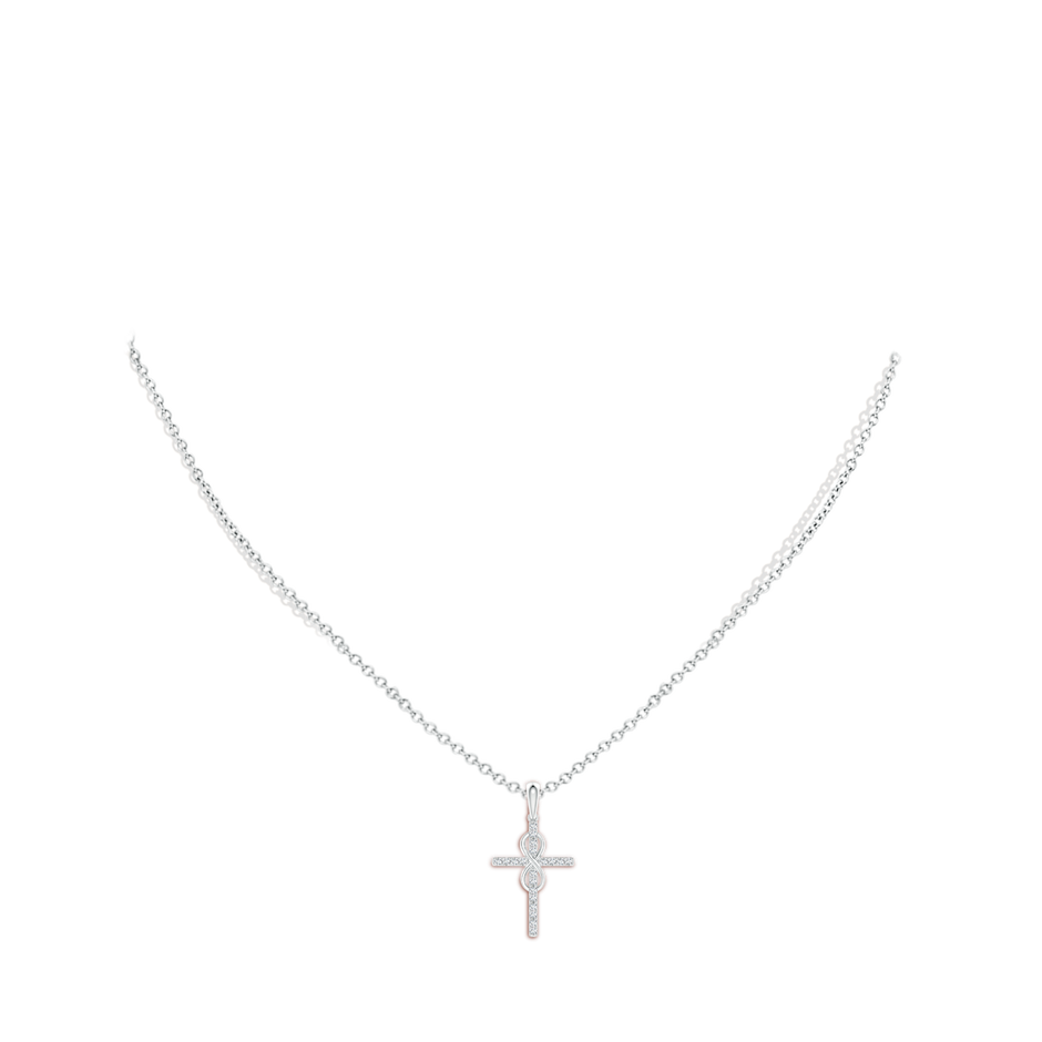 Made in yellow gold with 20 round diamonds totaling 1/10 carat. Diamonds are G color, VS2 clarity, set in prong settings on cross and infinity loop.