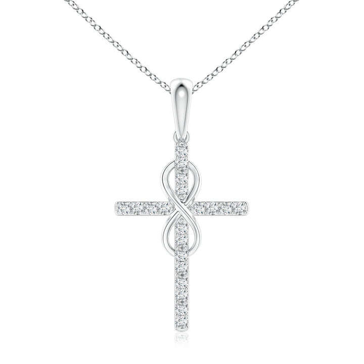 This Diamond Cross and Infinity Pendant by Angara unites two powerful symbols in one exquisite piece. The diamond-studded cross signifies faith and hope, while the vertically entwined infinity loop represents eternal love. Crafted in yellow gold, this pendant offers both spiritual meaning and refined elegance.