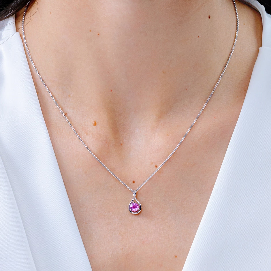 Solitaire Round Pink Sapphire Infinity Twist Pendant
