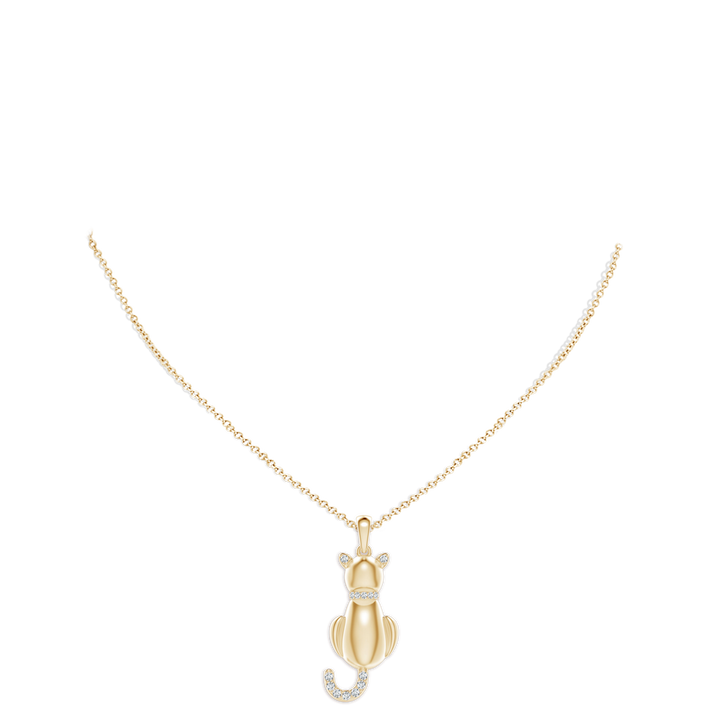 This Classic Diamond Cat Pendant by Angara delights with whimsical charm, adorned with shimmering round diamonds on the ears, collar, and tail. Crafted in lustrous 18k yellow gold, the pendant dangles gracefully from a single bale, perfect for cat lovers seeking playful elegance.