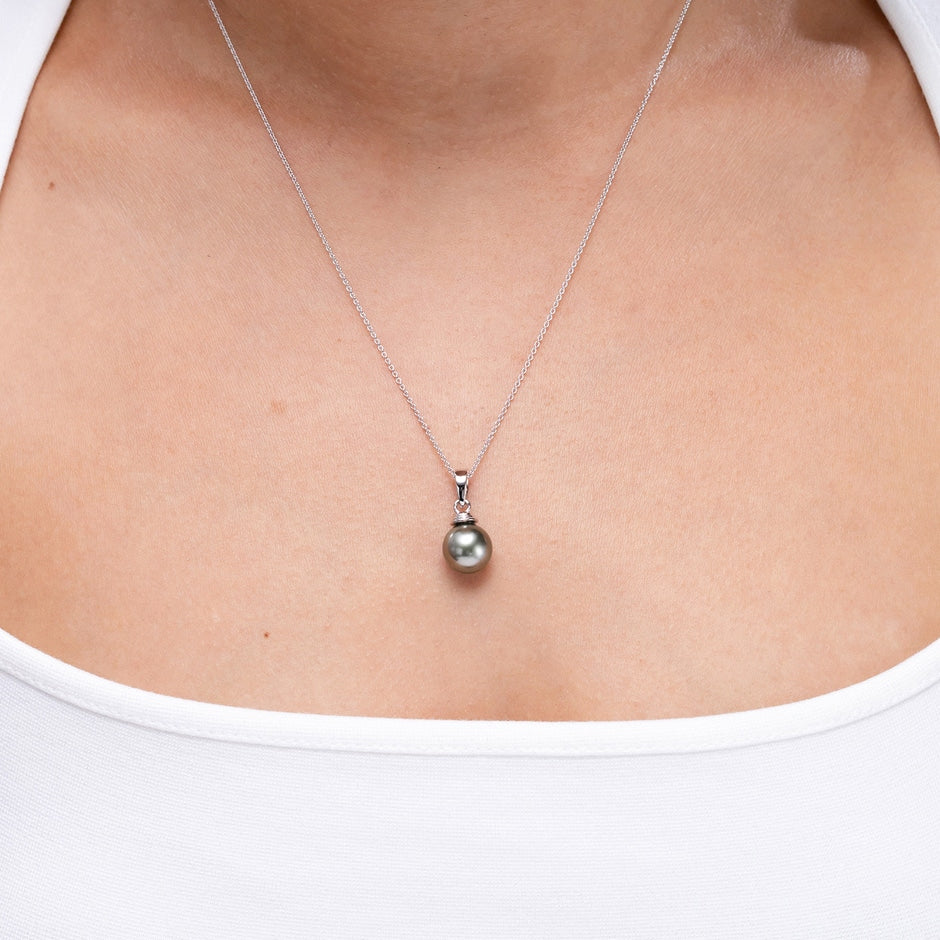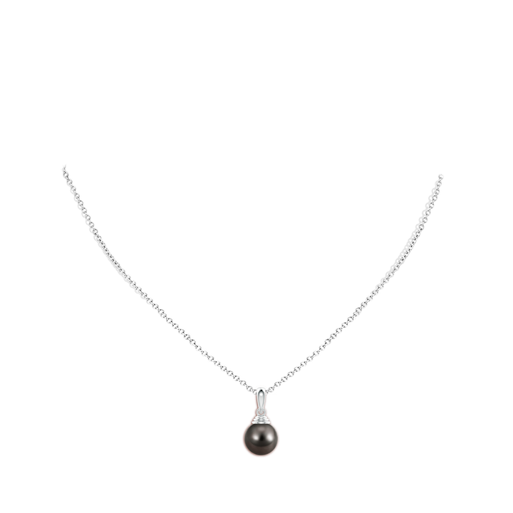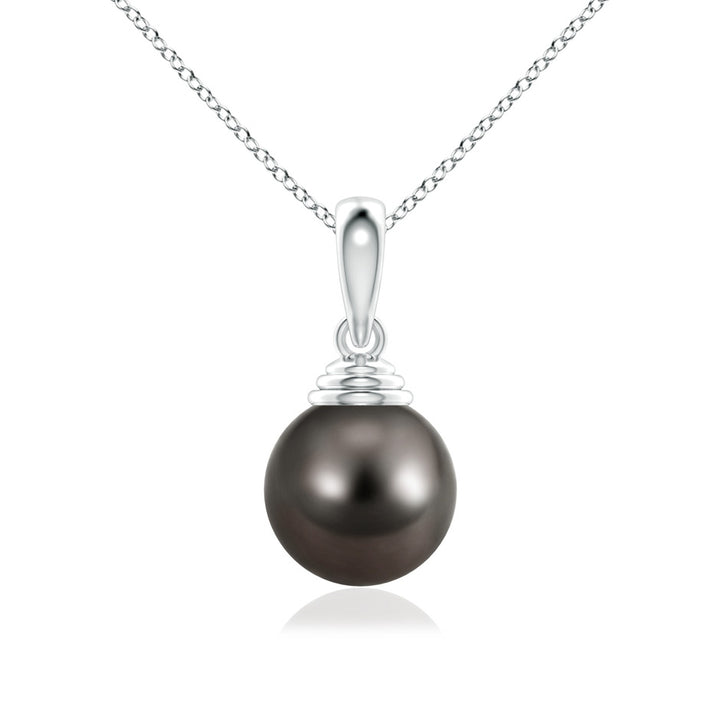 This Classic Solitaire Tahitian Pearl Pendant by Angara is a timeless treasure. Featuring a luminous AAA-grade Tahitian cultured pearl linked to a grooved peg and polished bale, the platinum setting highlights the pearl’s iridescence and thick nacre.