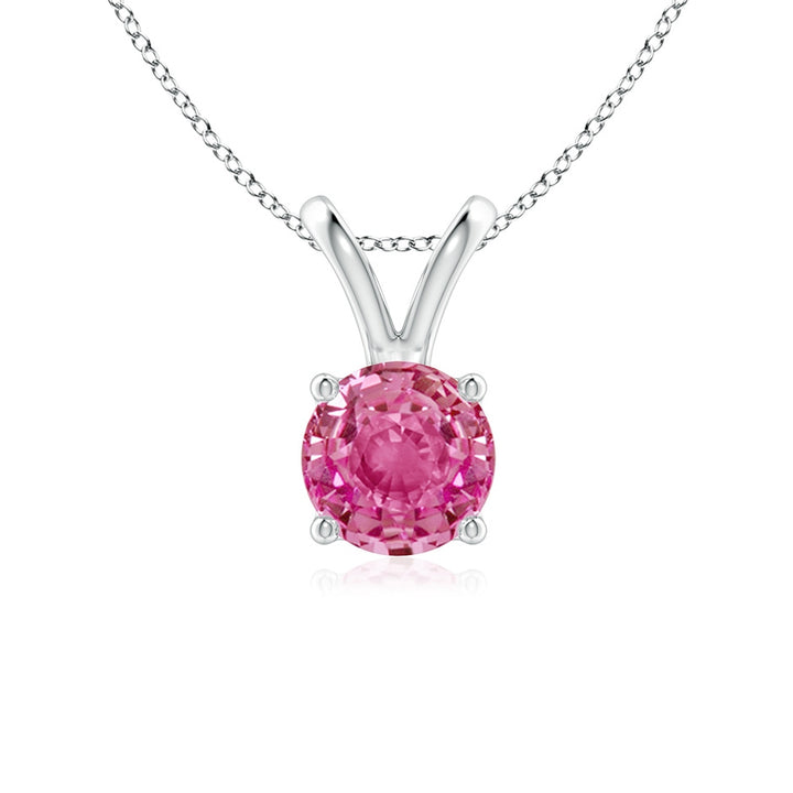 V-Bale Round Pink Sapphire Solitaire Pendant