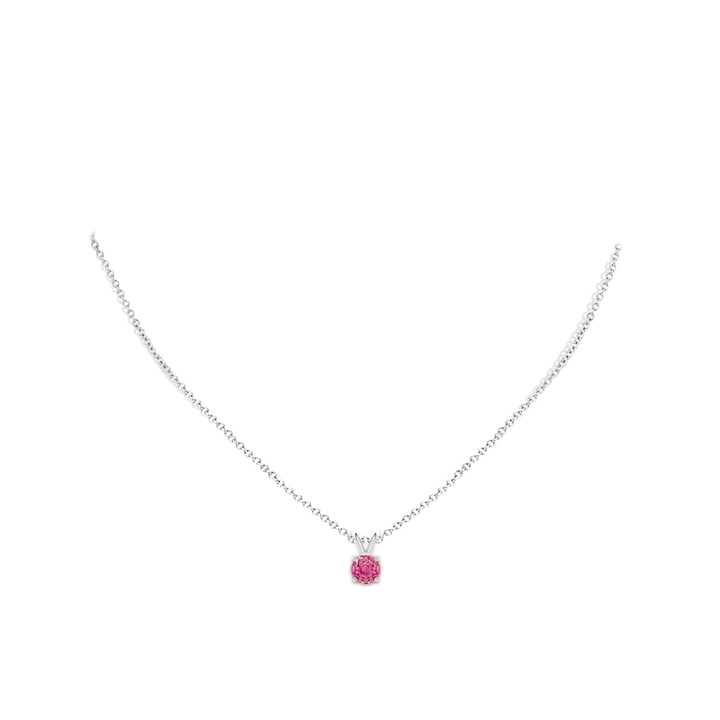 This V-Bale Round Pink Sapphire Solitaire Pendant by Angara enchants with its delicate pink brilliance and refined elegance. Prong set in 14k white gold, the round pink sapphire linked to the sleek V-bale offers a graceful statement of love and beauty. Its soft hue and classic setting make it perfect for layering with other pendants or wearing alone as a sophisticated accent piece. A subtle yet luxurious expression of femininity.