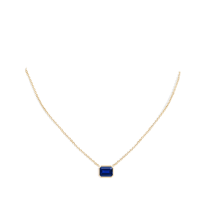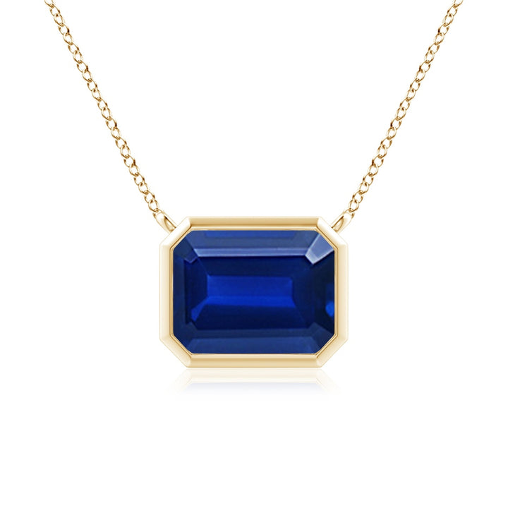 Lab-Grown East-West Bezel-Set Emerald-Cut Blue Sapphire Pendant