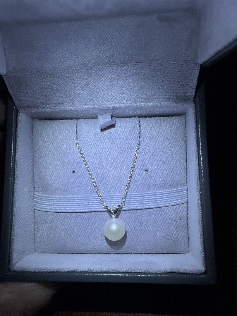 This Freshwater Pearl Solitaire V-Bale Pendant by Angara embodies classic elegance with its ultra-high luster cultured pearl, suspended gracefully from a polished 14k white gold V bale. The pendant reflects timeless beauty and natural sophistication, perfect for everyday wear or gifting.