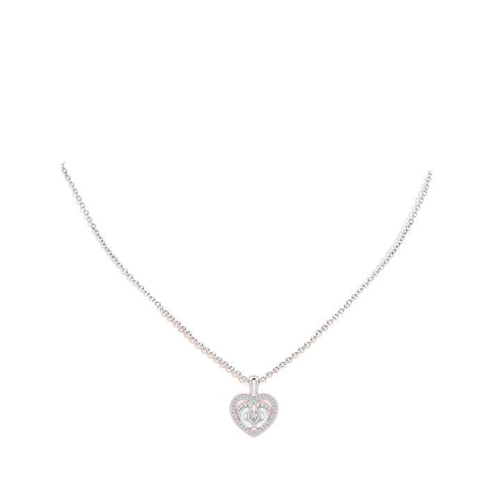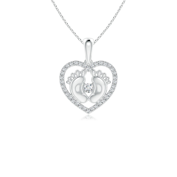 This Diamond Heart & Baby Feet Pendant by Angara is a heartfelt symbol of maternal love, exquisitely crafted in 14k white gold. The open heart frame adorned with prong-set diamonds sparkles like celestial stars, with a central diamond accentuating the adorable baby feet motif. Suspended on an 18-inch chain, this pendant is a touching keepsake for cherished moments.