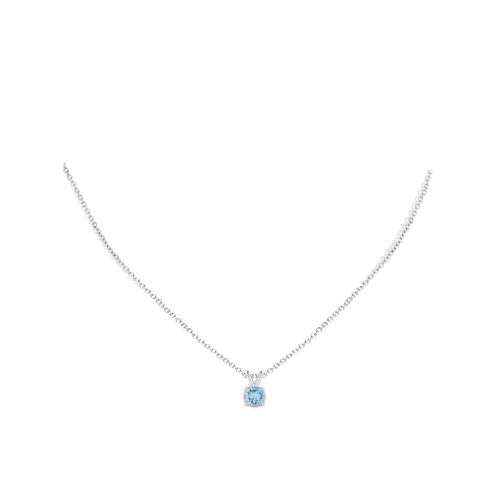 This V-Bale Round Aquamarine Solitaire Pendant by Angara enchants with its ice-blue brilliance. The round aquamarine is prong set in 14k white gold and linked to a polished V bale, offering a refined and versatile pendant that complements any style.