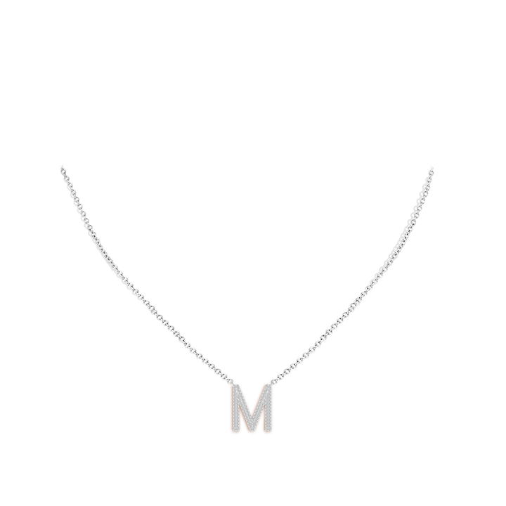 This Prong-Set Diamond Capital 'M' Knife-Edge Initial Pendant by Angara is a dazzling personal statement piece. The 14k white gold pendant features a knife-edge script “M” adorned with 87 prong-set round diamonds, totaling 0.38 ct, suspended from a chain with jump rings for versatile length options.