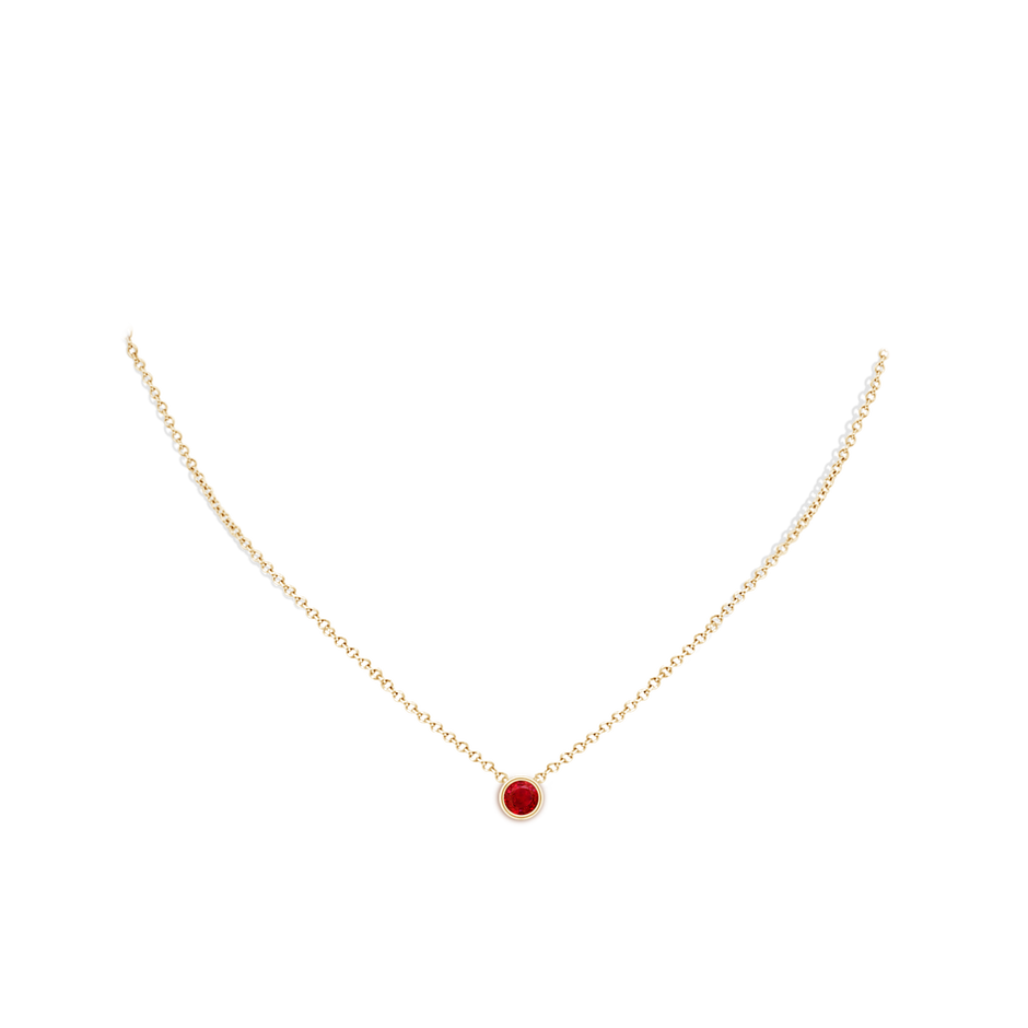 Crafted in 14k yellow gold with one AAA-grade round ruby measuring 5mm, total carat weight 0.60 ct, heated enhancement, set in bezel setting.