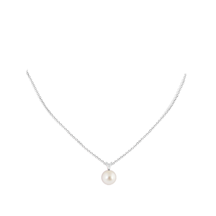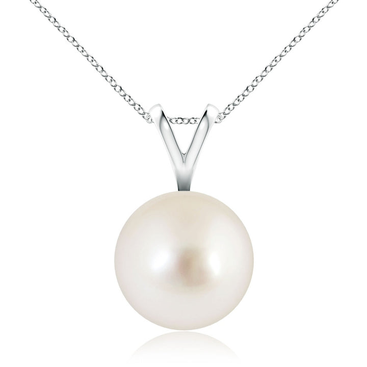This South Sea Pearl Solitaire V-Bale Pendant by Angara offers classic elegance with a single 10mm South Sea cultured pearl suspended from a sleek 14k white gold V bale. The pendant captures light beautifully, making it a timeless and luxurious addition to any collection.